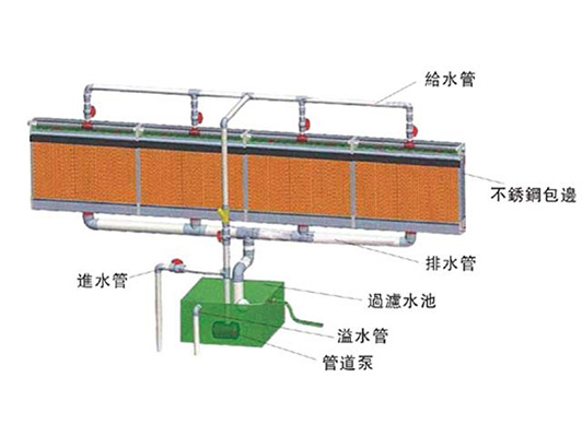 水帘墙降温系统是水蒸发吸热原理,负压通风原理,来排出厂房内的废气、污气及解除高温闷热。