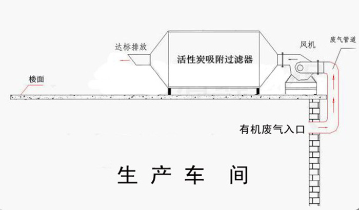 含尘气体由风机提供动力,正压或负压进入塔体,由于活性炭固体表面上存在着未平衡和未饱和的分子引力或化学健力,因此当此固体表面与气体接触时,就能吸引气体分子,使其浓聚并保持在固体表面,污染物质从而被吸附,废气经过滤器后,进入设备排尘系统,净化气体高空达标排放。